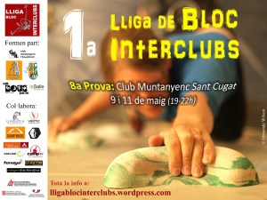 Estem arribant al final… Sniff… quasi 100 participants, 8 proves, gran ambient, tothom ha gaudit de bones estones… i la última estació, Sant Cugat del Vallès. Ja estem fent de dimoniets i pensant els últims reptes… Això serà equest dimecres dia 9 de maig i divendres 11 de maig, entre les 19 i 22h, 8a prova de la Lliga de Bloc Interclubs. Novetats: Des de l’organització hem pensat fer l’entrega de premis, regals, etc en un dia posterior que us avançarem properament (dintre d’uns quinze dies aprox). Així tindrem temps suficient per organitzar l’entrega de premis i les classificacions com cal. Així que… entreneu com bous i boues, que encara queda l’última apretada…. Per aquest motiu, tant el búlder interior com la cova búlder exterior no es podrà fer servir pels usuaris habituals. Disculpeu les molèsties. Gràcies