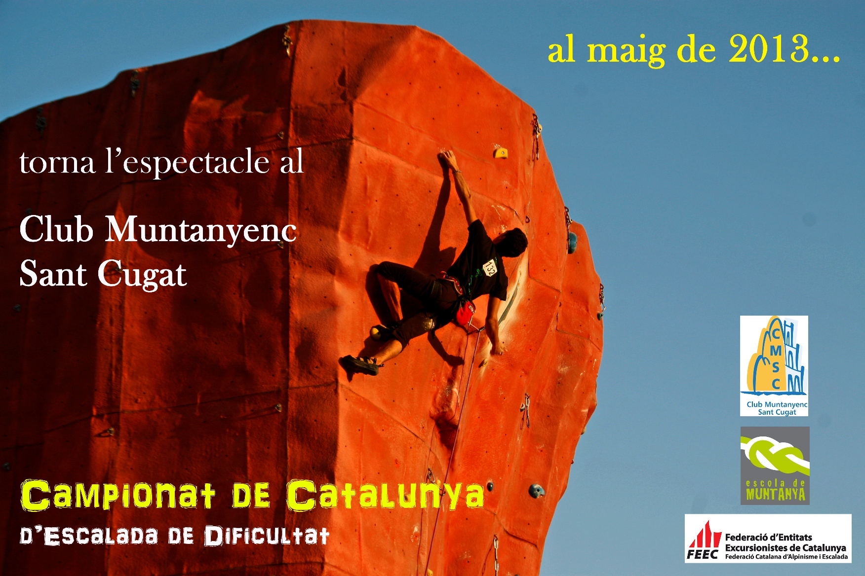 El pròxim maig 2013, el nostre rocòdrom Josep Barberà acollirà el Campionat de Catalunya d’escalada de dificultat, amb els millors escaladors de casa nostre. L’últim Campionat de Catalunya que es va celebrar al CMSC va ser a l’any 2010 amb una acollida de públic i participants molt important i amb la retransmissió de les finals en directe per internet. Al 2013… torna l’espectacle. Us anirem informant!