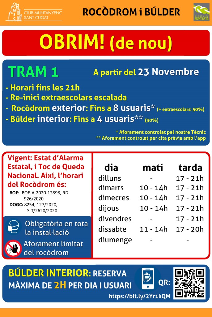 A partir del 23 de novembre estem oberts de nou. Preneu nota de les condicions del denominat Tram 1: