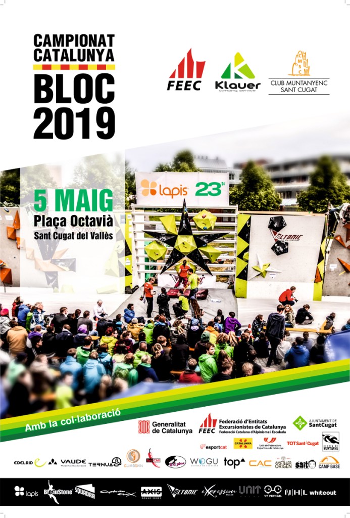 El pròxim diumenge 5 de maig l’Escola de Muntanya del Club Muntanyenc Sant Cugat (CMSC) organitza el Campionat de Catalunya d’Escalada en Bloc 2019. El Campionat de Catalunya es converteix així en un dels esdeveniments de l’any inclosos en la celebració del 75è aniversari del nostre club, i conjuntament amb l’Ajuntament de Sant Cugat, la Federació d’Entitats Excursionistes de Catalunya (FEEC) i Klauer Climbing Service volem oferir una competició de primer nivell.